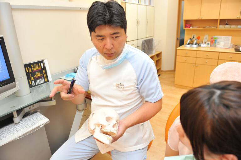 患者さんのプライバシー性を考慮。診療コーナーでは全室扉を完備。カウンセリング、インフォームド・コンセントがしやすいようにレントゲン画像、CGなどを使って説明。車いすでそのまま診療を受けられるように広めに設計。 診察台内の水に雑菌が繁殖しないように毎回洗浄。うがいの度に少々うるさいですが、排水も洗浄してから排水へ。長期休暇明けには残留水を排水してから使用。